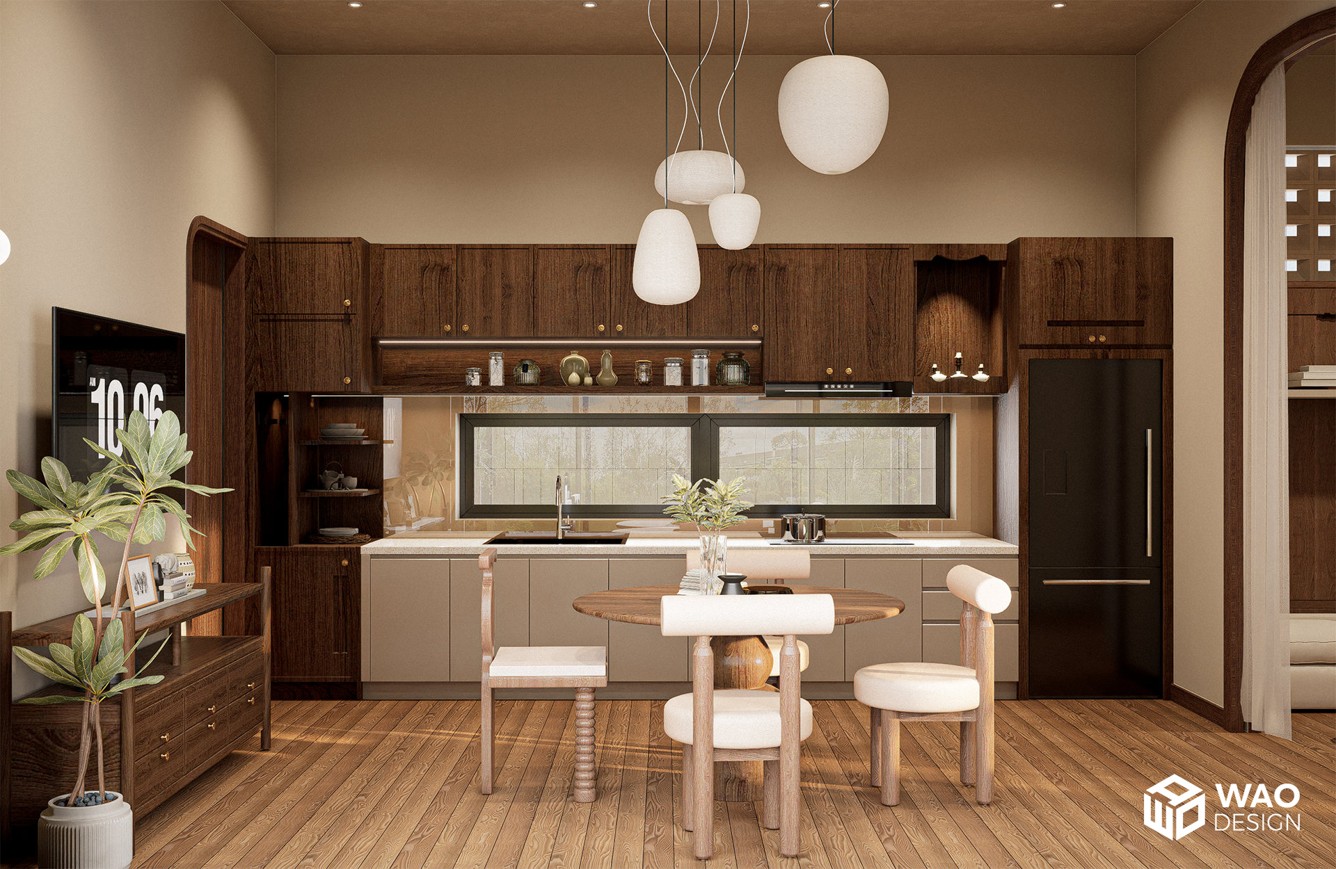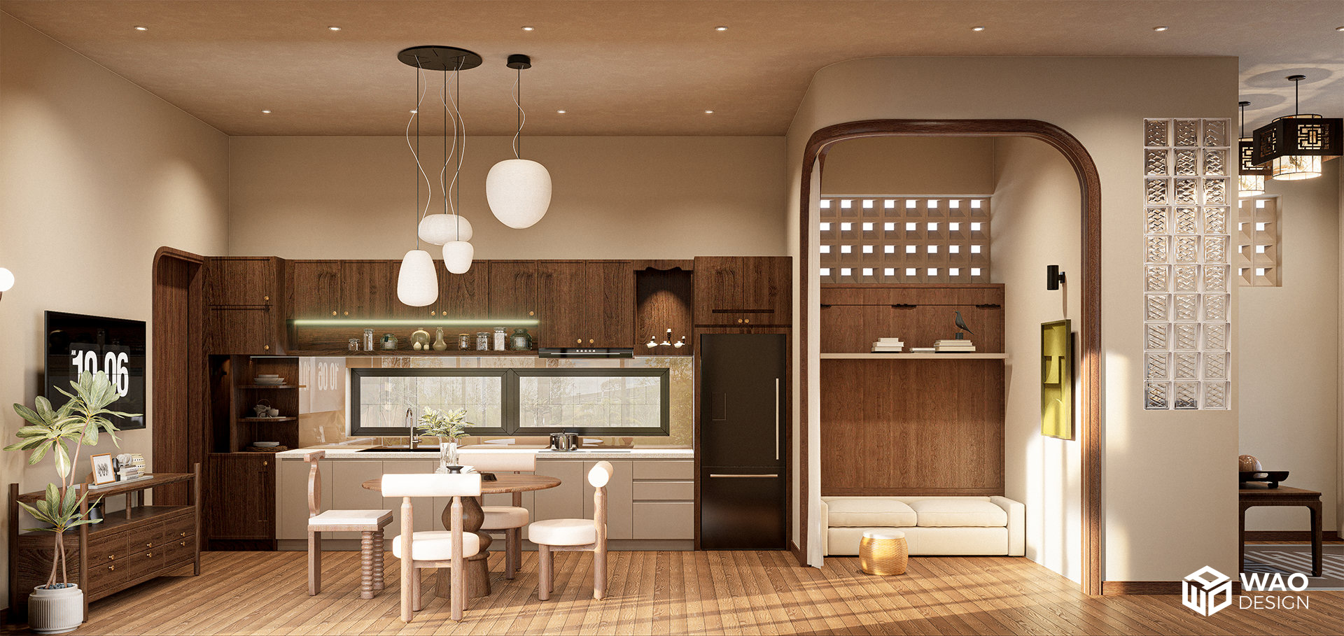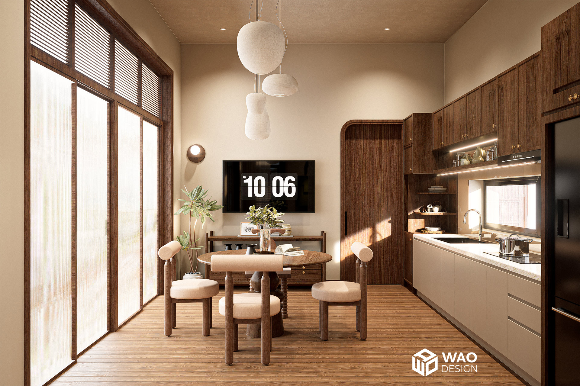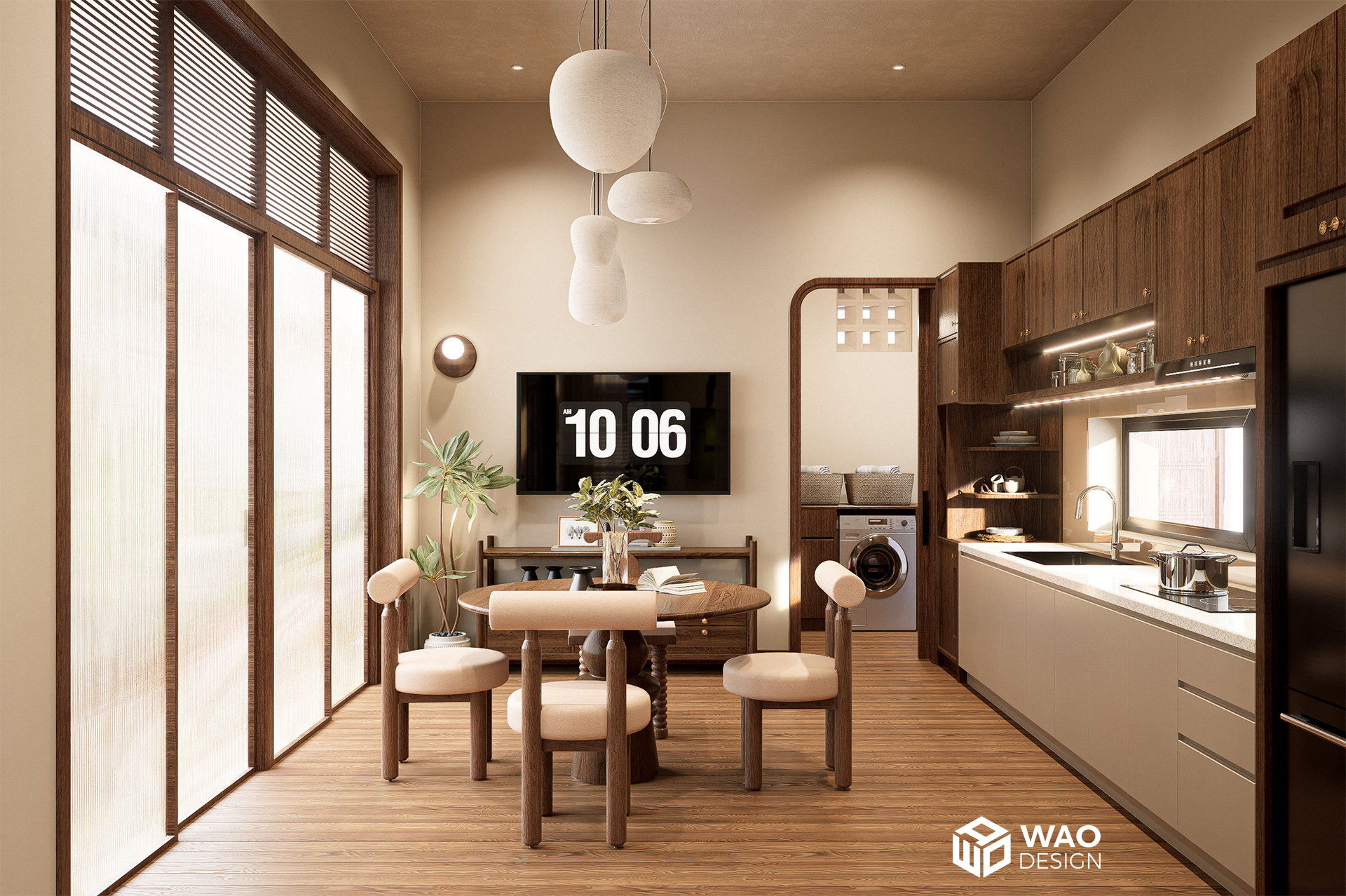 Amid the hustle and bustle of city life, there’s a longing to escape to the countryside for a touch of peace. A home is not just a place to return to, but also a sanctuary where precious memories are kept. With the desire to create a vintage space in everyday life — a home full of Vietnamese character — we designed a traditional three-compartment house that reflects the owner’s wishes, while blending in modern elements. The result is a warm and welcoming space that feels truly Vietnamese.