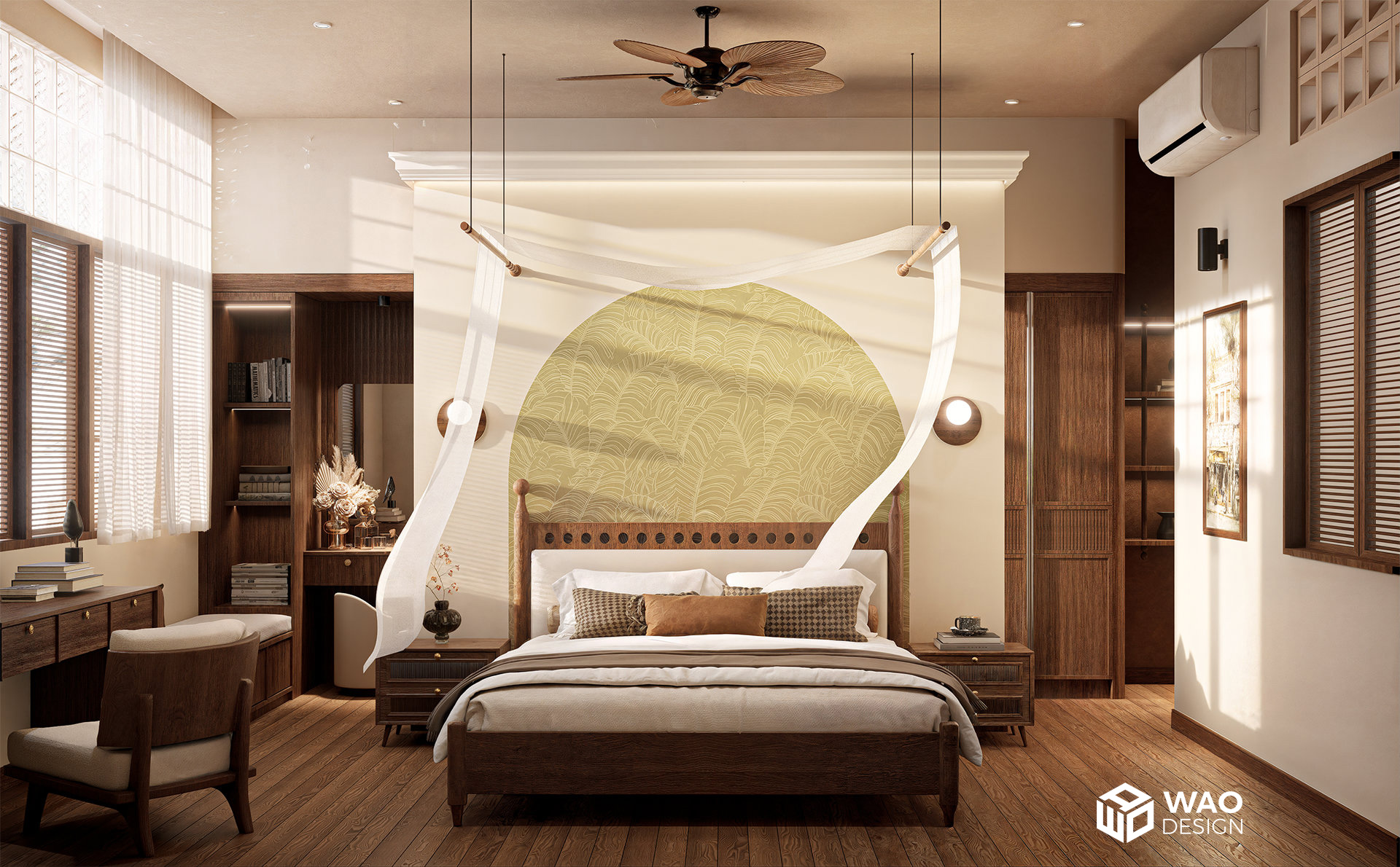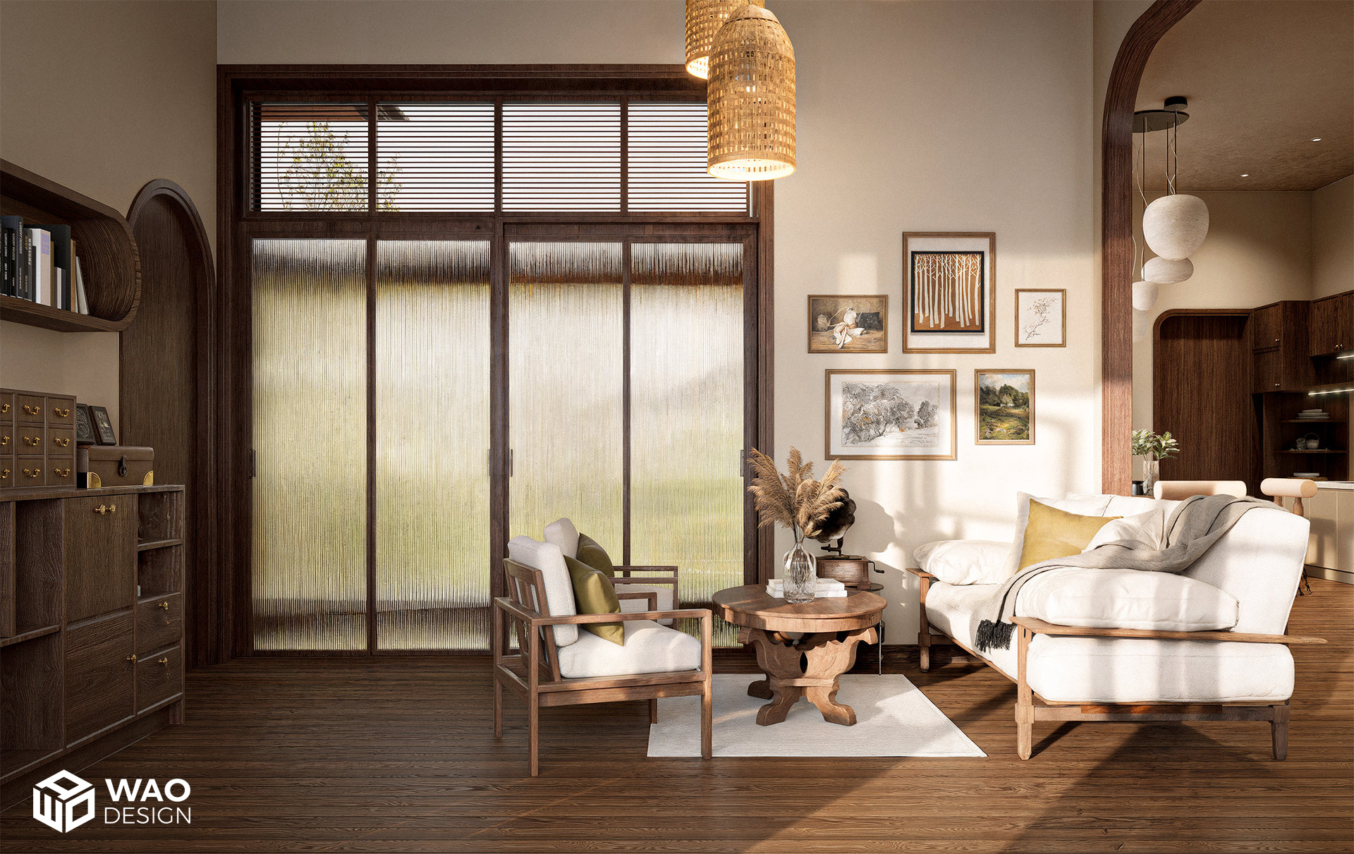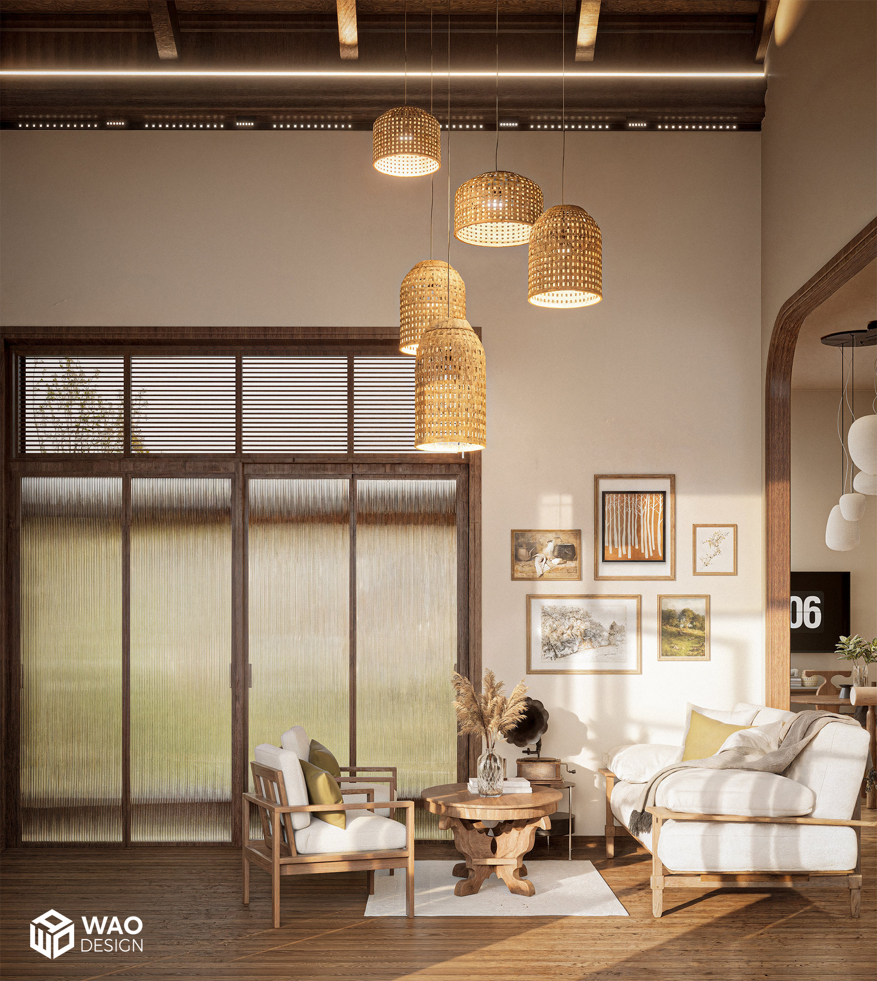 Giữa nhịp sống hối hả muốn bỏ phố về quê tìm chút yên bình. Ngôi nhà không chỉ là nơi để trở về mà còn là chốn bình yên, nơi người ta cất giữ những điều trân quý. Với mong muốn tạo ra một không gian vintage giữa đời thường, một ngôi nhà đậm chất Việt. Chúng tôi đã thiết kế ngôi nhà với không gian 3 gian truyền thống phù hợp yêu cầu của gia chủ và không quên kết hợp với những ngôn ngữ hiện đại, giúp cho không gian trở nên ấm cũng nhưng rất Việt Nam.
