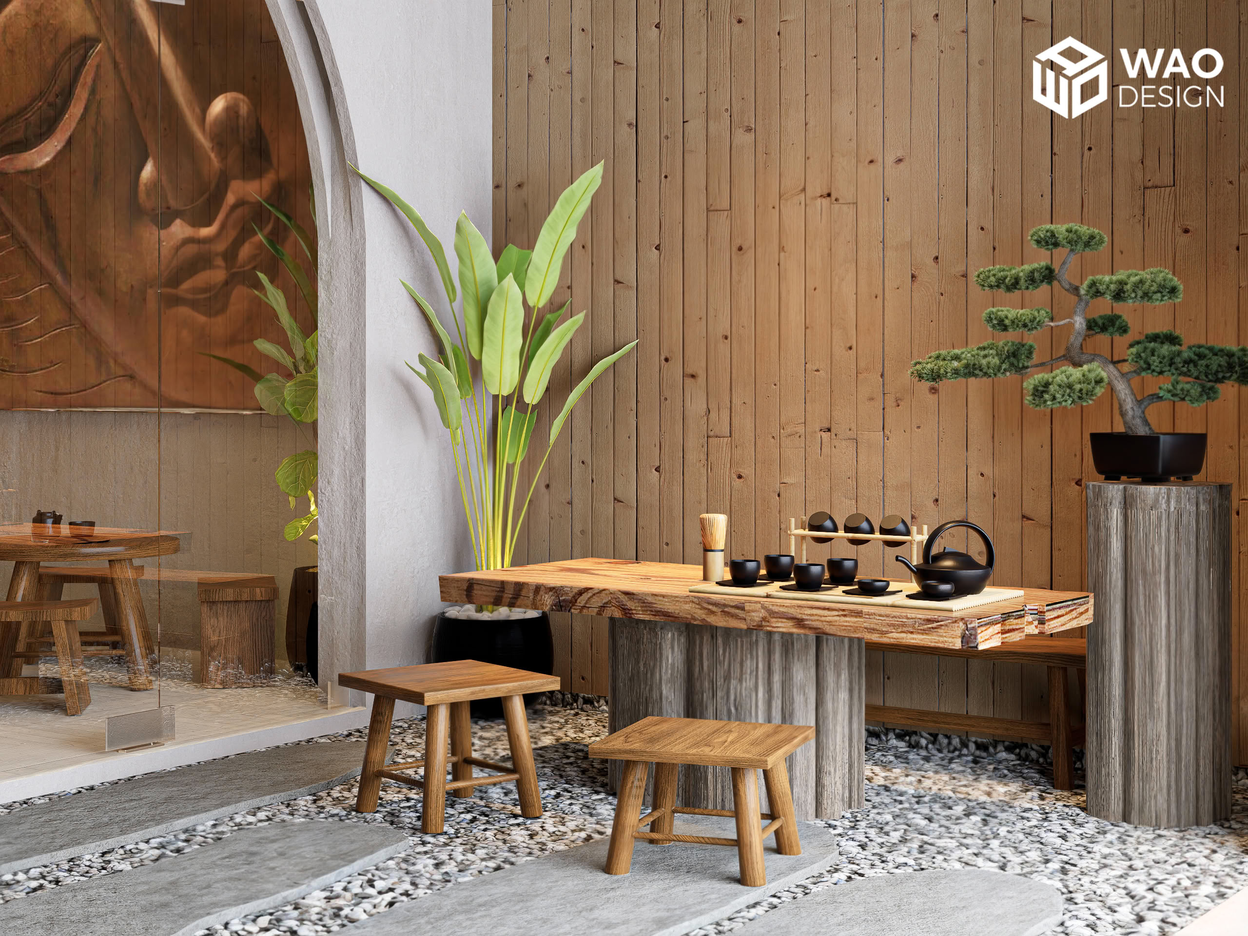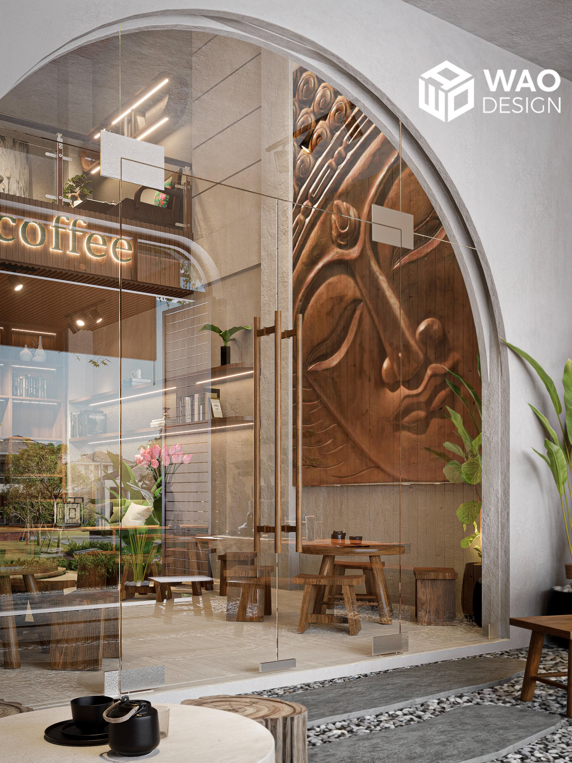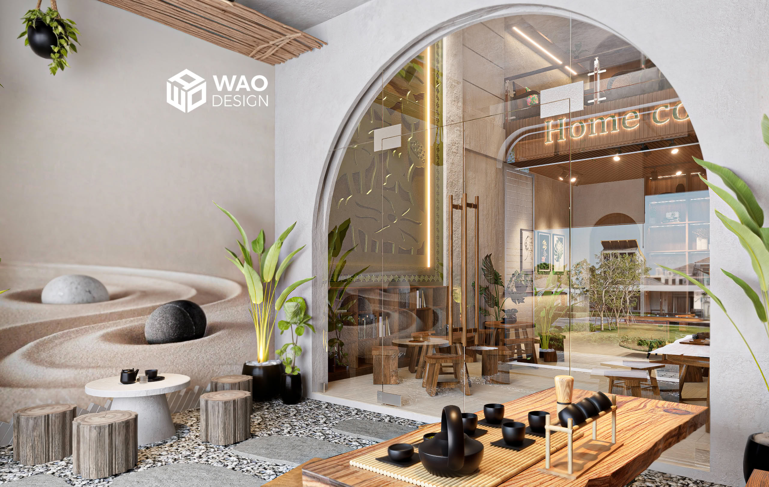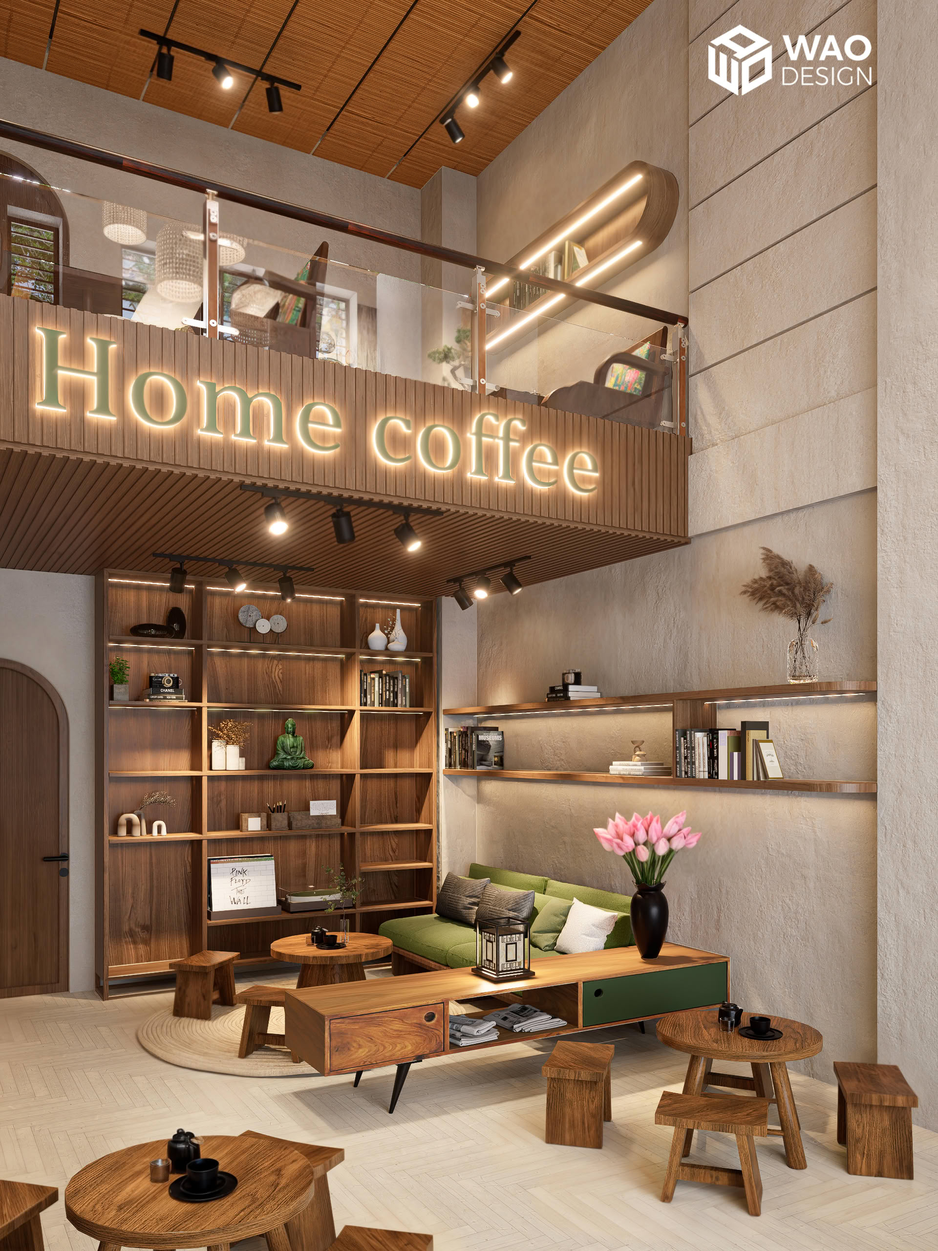 With the desire to create a tranquil, Zen-inspired café space — rustic yet truly Vietnamese, while still aligned with feng shui and the owner’s personal taste. Home Coffee is designed with earthy tones and natural wood materials, bringing a sense of warmth, calm, and peace. It carries a subtle Buddhist spirit, yet remains modern and inviting.