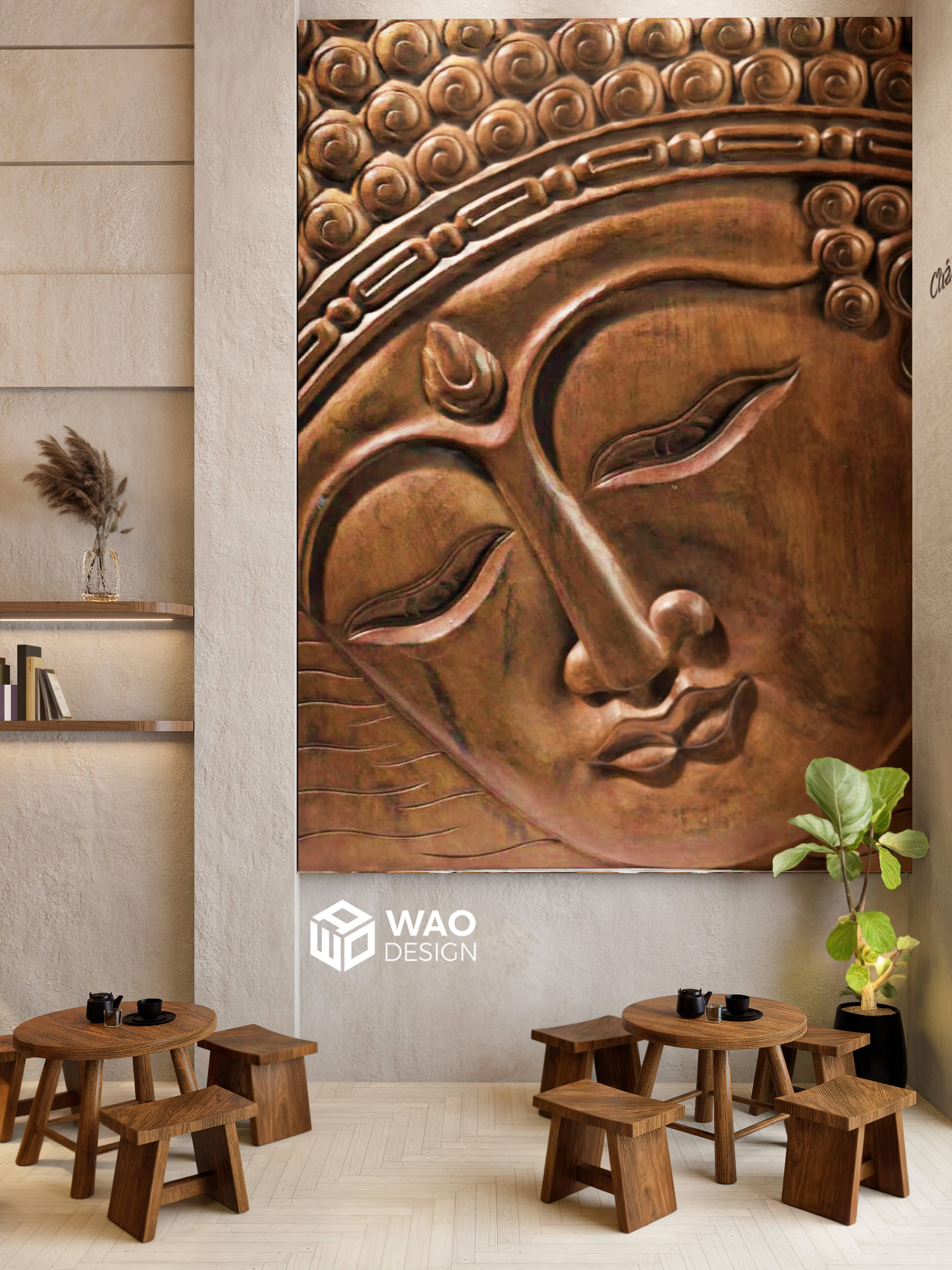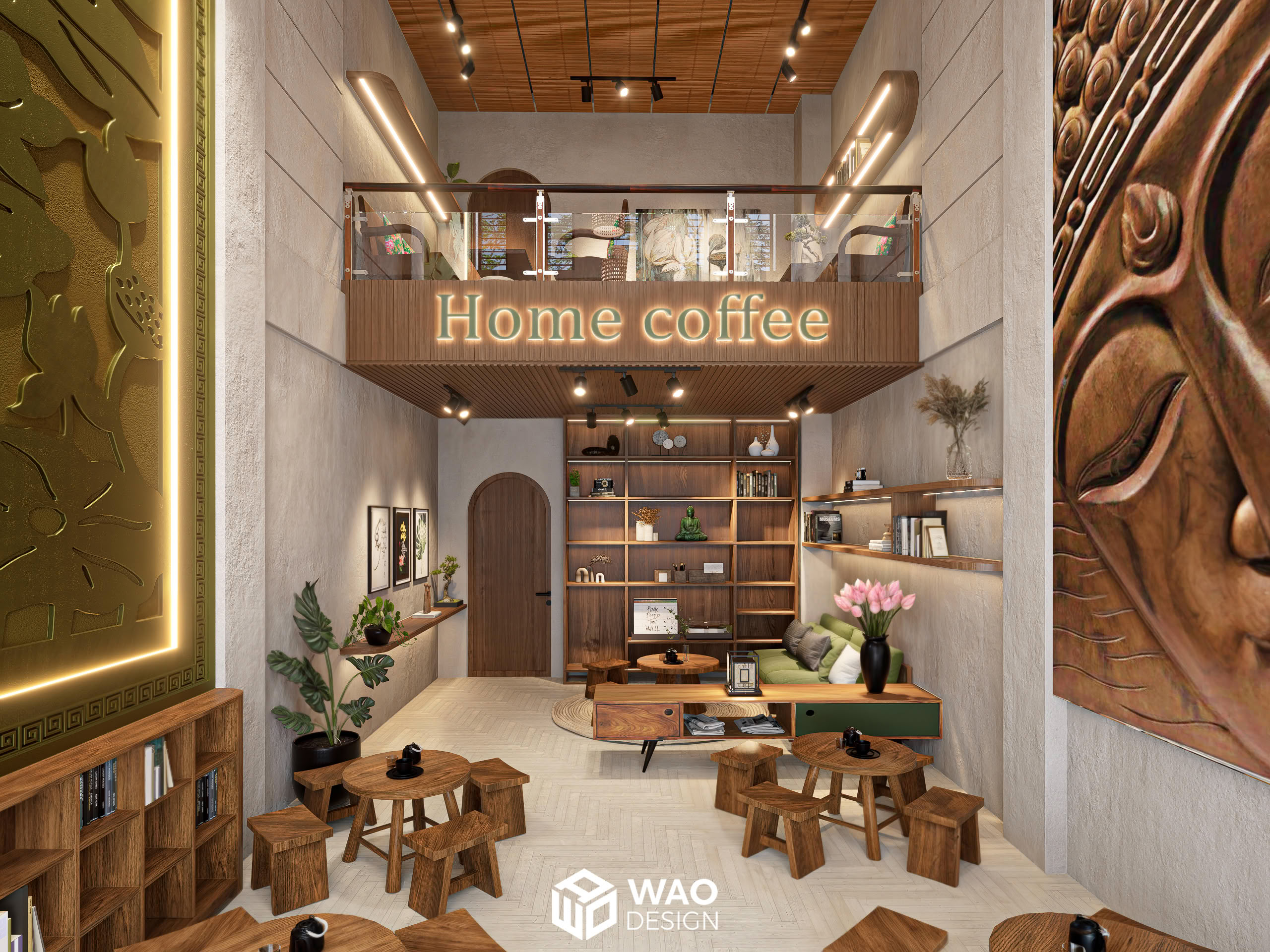 Với mong muốn tạo ra một không gian café thiền nhẹ nhàng mang hơi hướng mộc mạc nhưng rất Việt Nam lại phù hợp với phong thuỷ và sở thích cá nhân của chủ đầu tư. Home coffee được phối với những màu sắc mộc mạc và vật liệu gỗ tự nhiên mang lại cảm giác thân thuộc, nhẹ nhàng và yên bình, mang theo hơi hướng Phật giáo nhưng không kém phần hiện đại.