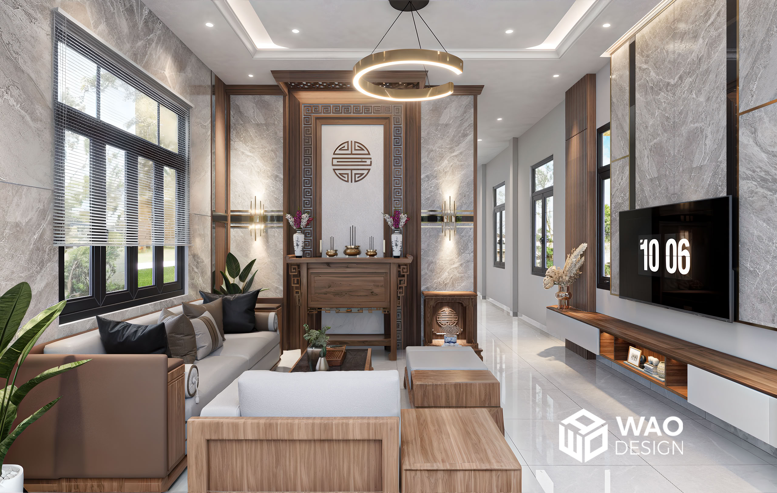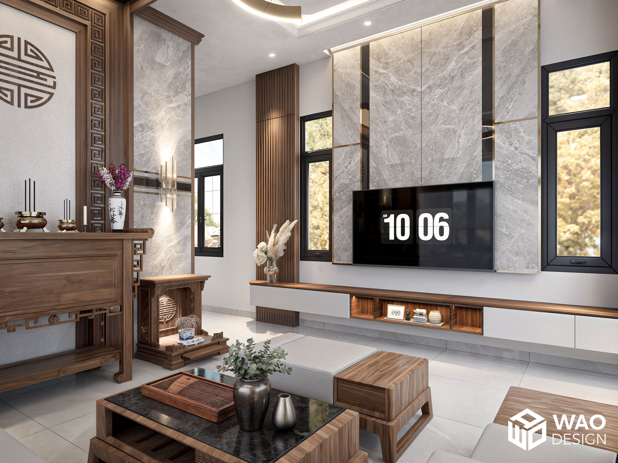 As a teacher living in a rural area of Southern Vietnam, he has always had a love for neoclassical architecture. This single-story house was designed to ensure comfort and full functionality, blending a touch of classical elegance with the owner’s fondness for natural wood. Every space radiates sophistication without being overly elaborate, while still remaining airy, bright, and welcoming.